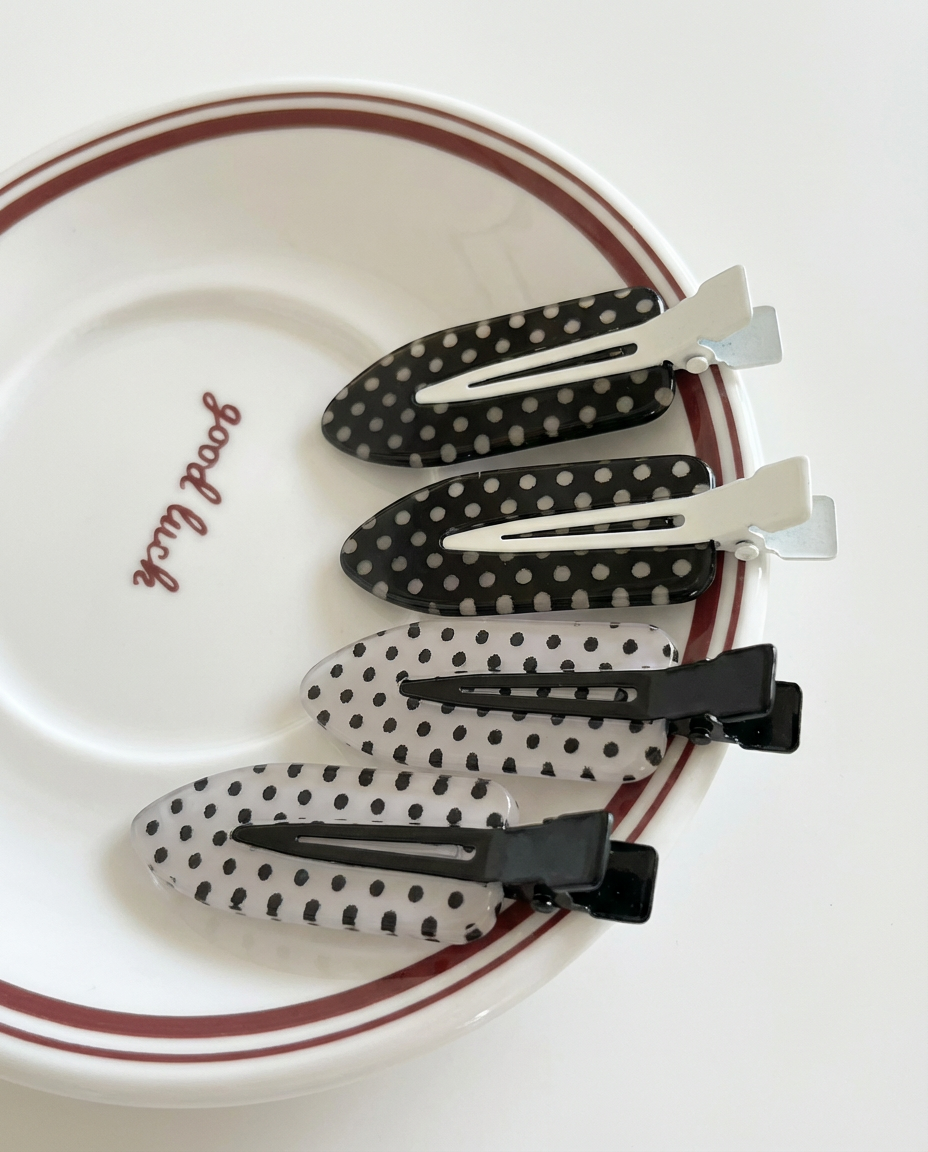 4 stk. stilrene hairclips med klassisk prikdesign, der holder håret sikkert på plads uden at glide. Perfekte til styling, opdeling og et feminint touch i hverdagen.